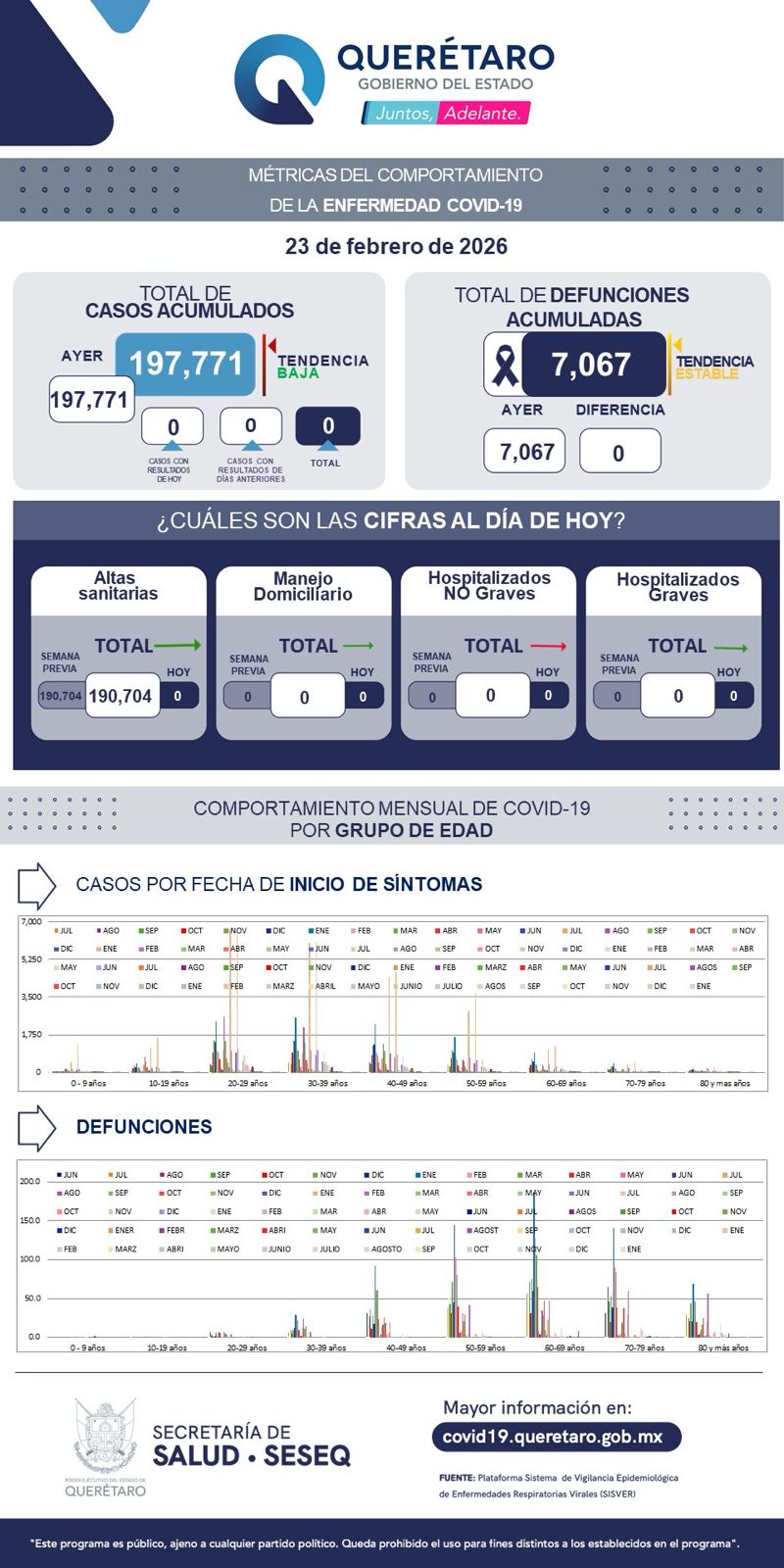 El parte más reciente de la Secretaría de Salud de Querétaro marca una cifra que durante meses fue anhelo: cero nuevos casos de COVID-19 en los últimos siete días y ninguna defunción registrada en ese periodo.